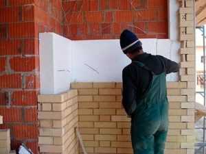В этом случае толщина облицовочного слоя может быть самой разной: от 5 до 15 см. Для правильной организации работы устанавливают маяки, которые обеспечат равномерность покрытия и его соответствие горизонтали и вертикали. В качестве маяков традиционно используют перфорированный металлический профиль.