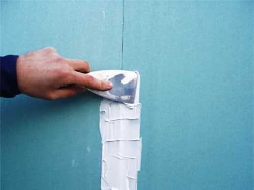 Работу в этой области нужно начинать с потолка. Приготавливается раствор той же консистенции, что и для стен, но используют уже более узкие шпатели. Образование небольшого нахлёста на основную часть поверхности не критично: их в будущем устраняют наждачной бумагой. По такому принципу заделывают все углы по всему объему помещения.
