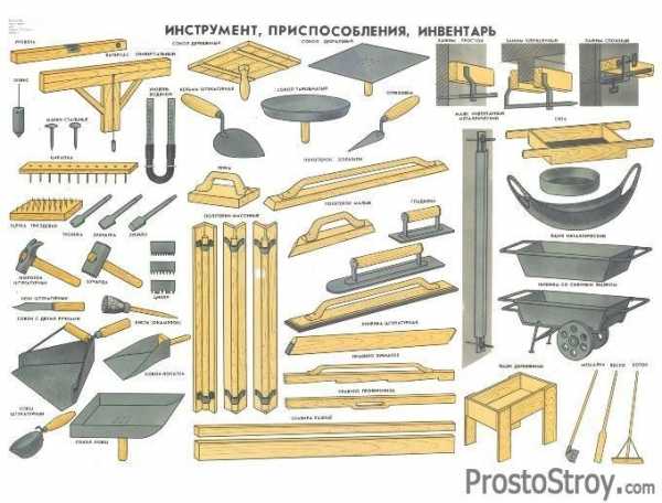 Полутерки бывают различной длины и ширины в зависимости от назначения. Они применяются для разравнивания и намазывания раствора. Терки применяют для затирки готовой штукатурки. Также необходимы строительный и водяной уровни, отвес, угольник.