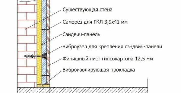 Схема звукоизоляции стены с помощью сэндвич-панели