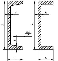 Размеры швеллеров и масса 1 м швеллера должны соответствовать параметрам указанным в таблицах 1 и 2.