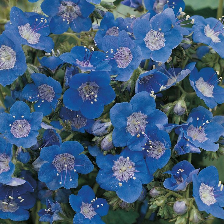 Незабудки — еще один из очень немногих настоящих синих цветов. Они растут на высоких волосатых стеблях, которые могут достигать двух футов в высоту. Цветы имеют пять лепестков и желтые центры, которые выглядят так, как будто они отрываются от стеблей.