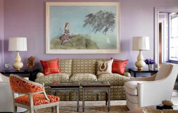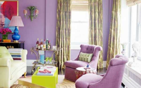 Сиреневый в интерьере гостиной