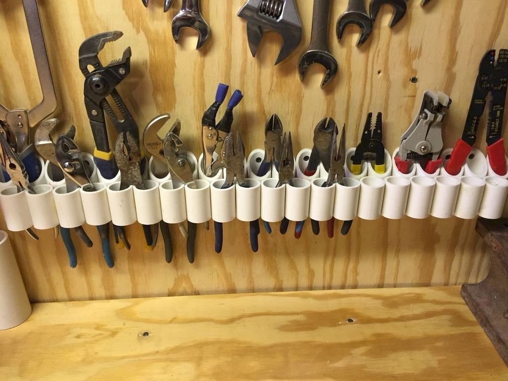 Когда вы оцениваете ПВХ, вы обнаружите, что они низкие, поэтому этот проект «Сделай сам» не будет вас обижать. Обрежьте пластиковые трубы под углом, чтобы они держали ваши инструменты с длинной ручкой.