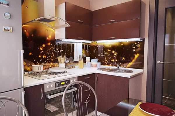 Зеркальное покрытие, благодаря отражающей поверхности, визуально расширит маленькую кухню.