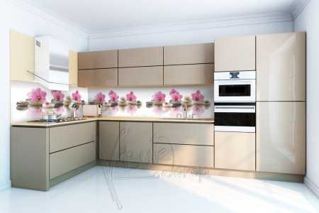 Декоративные стеновые панели с фотопечатью носят название скинали. В интерьере они используются охотно, так как обладают превосходными дизайнерскими качествами. Строго говоря, они изготавливаются не только из стекла, но и из пластика, МДФ, ДСП, металла и прочего. Однако для кухни годятся далеко не все материалы, как указывают отзывы экспертов. На фото – панели из МДФ с изображением орхидеи.