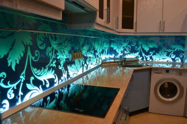 Полезная информация! Использовать скинали в качестве светильника – довольно интересное и оригинальное решение, которое выполняется путем монтажа под шкафчиками светодиодной ленты.