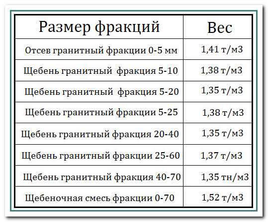 К примеру, из таблицы мы видим, сколько щебня 5 – 20 в кубе – 1,35 тонны.