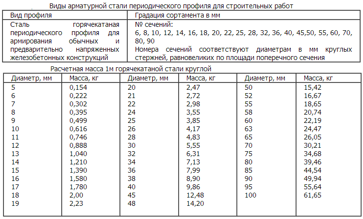 Вес арматуры, таблица веса (масса) за 1 метр арматуры