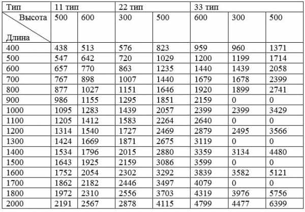 Таблица расчета мощности стальных радиаторов отопления