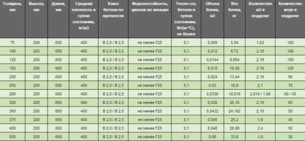 Параметры (размер, вес, объем, количество) газобетонных блоков D400