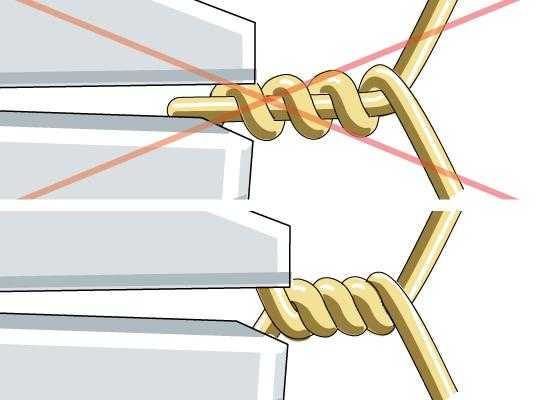 Когда подготовительные работы будут выполнены, два провода скрещивают и на расстоянии 2,5 см от края начинают наматывать многожильный провод.