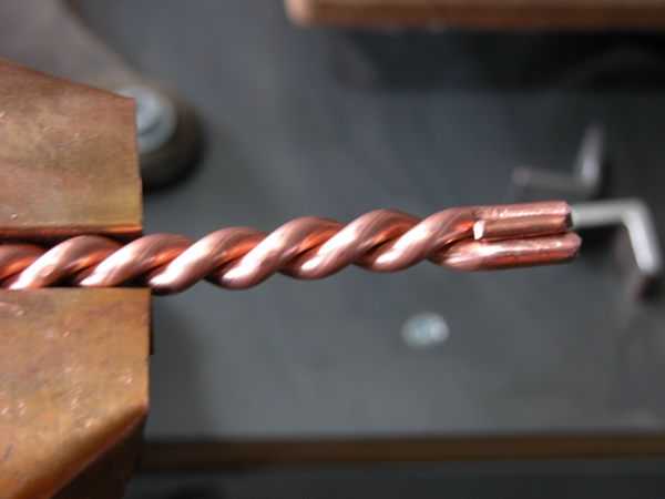 Если нужно соединить жилы большого диаметра, используется бандажная скрутка. Методика желобком применяется преимущественно для алюминиевого провода. Очень важно выполнять такое соединение с большой степенью точности.