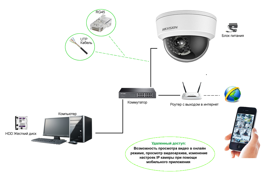- Камеру можно монтировать в любом месте, где есть электропитание.