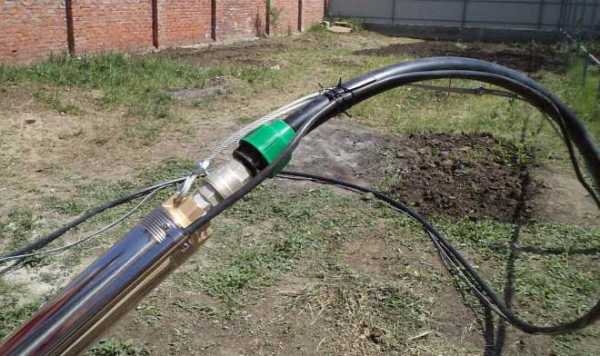 Следующим этапом работы станет подсоединение трубопровода. В этом процессе сложности никакой нет. Единственное, что нельзя упускать из вида — крепление к трубе электрического кабеля двигателя и фиксирующего троса. Крепеж производится пластиковыми хомутами через 1,5-2,5 метра. Фиксирующий трос должен быть диаметром 6-8 мм в полиэтиленовой оболочке.