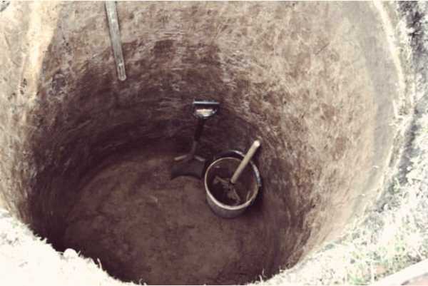 Дно выравнивается и по центру делается шахта, при помощи бура, которая должна пересечь водоносный слой.