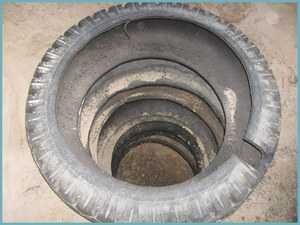 - Автопокрышки изначально не предназначены для оборудования выгребных ям, поэтому срок службы конструкции не превысит 10-15 лет. Резина и металлические элементы под воздействием микроорганизмов и химически агрессивной среды стоков попросту начнут коррозировать и разрушаться.