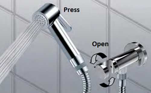 Настенный гигиенический душ. Монтировав в туалете смеситель с гигиеническим душем, можно превратить обычный унитаз в унитаз-биде. При необходимости совершения гигиенической процедуры нужно будет только открыть воду в смесителе и, подведя лейку к телу, нажать на кнопку (кнопка включения воды находится непосредственно на лейке).