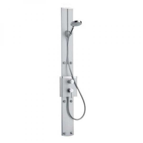 | Панель | Душевая панель с термостатом является наиболее дорогим устройством, но в то же время обладает наибольшим количеством функций. В частности, помимо жесткого и гибкого душа панели зачастую оснащаются форсунками для гидромассажа, а также другими дополнительными опциями. Как правило, применяют встроенный в панель термостат для душевой кабины. |