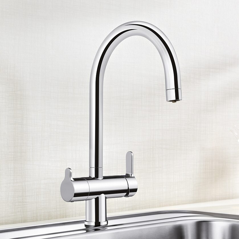 ΠΎΠ½Π½ΡΠΉ ΡΠΌΠ΅ΡΠΈΡΠ΅Π»Ρ Triflow Ρ Π΄Π²ΠΎΠΉΠ½ΠΎΠΉ ΡΡΠΊΠΎΡΡΠΊΠΎΠΉ, ΠΊΡΠ°Π½ΠΎΠΌ Π΄Π»Ρ ΠΎΡΠΈΡΠ΅Π½Π½ΠΎΠΉ Π²ΠΎΠ΄Ρ ΠΈ Π³ΠΈΠ±ΠΊΠΈΠΌ ΠΈΠ·Π»ΠΈΠ²ΠΎΠΌ. Π‘ΠΌΠ΅ΡΠΈΡΠ΅Π»Ρ Π΄Π»Ρ ΠΊΡΡ