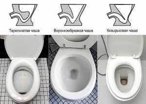 От формы чаши зависит то, сколько воды будет расходоваться при каждом смыве и будут ли брызги. Существует три вида форм: