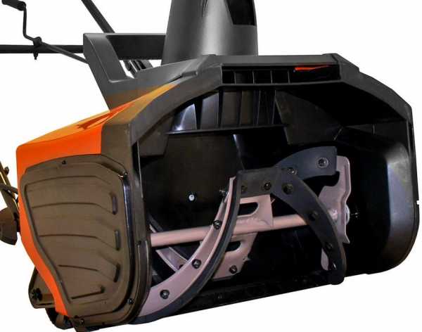 - шнек – главный рабочий орган, расположенный внутри ковша. Если электроснегоуборщик движется вперед, то шнек захватывает снег, быстро измельчает и выводит его посредством выпускного желоба в сторону. Этот узел снегоочистителя может изготавливаться из пластика или металла. Электроснегоуборщик с металлическим шнеком может убирать не только свежевыпавший, но и тяжелый слежавшийся снег;