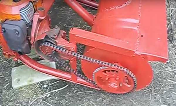- В качестве дополнения для других агрегатов (мини-трактору или мотоблоку). Поэтому на данные механизмы мотор не устанавливают. Передача вращательного движения от двигателя на ротор происходит посредством цепной или ременной передачи.