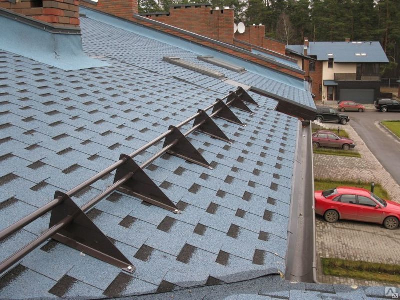 Конструктивно это стальной профиль, согнутый углом. Устанавливаются вдоль края кровли двумя рядами с разрывом в 1-1,5 метра.