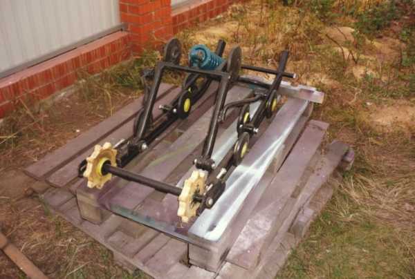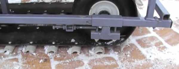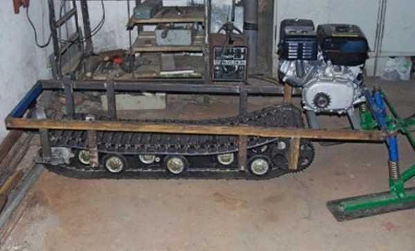 - Готовый гусеничный механизм крепится к самодельному снегоходу.