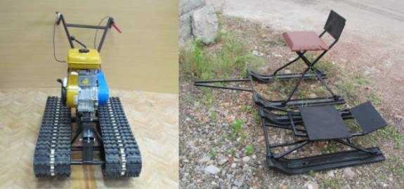 Немаловажное значение имеет и ведомая часть, присоединенная к мотоблоку. Это сиденье для водителя и место для багажа. В данном случае можно использовать все, что придет на ум: доска, табурет, сани, кресло и т. д. Единственным важным условием при выборе является непромокаемость сиденья.