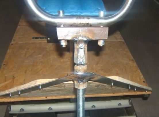 - Приваривается сиденье и рукоятки. К правой ручке проводятся элементы ручного управления. Вертикальная ось рукояток соединяется с лыжами, чтобы ими было легко управлять.