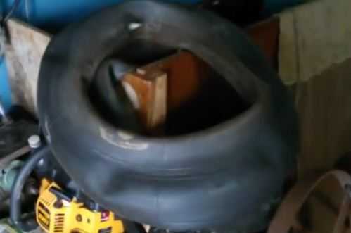 7. Обеспечить ваш агрегат зимней «обувью» не так то, просто. Для снижения пробуксовки используют цепи. Возьмите камеру грузового автомобиля, спустите воздух и наденьте на каждое колесо 5-6 цепей, а затем снова накачайте. В результате получите колеса адаптированные к зимнем условиям.