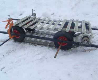 Подобное сложное крепление будет надежным фиксатором для прицепа и всей конструкции в целом. Это уменьшит маневренность снегохода, но увеличит его устойчивость.