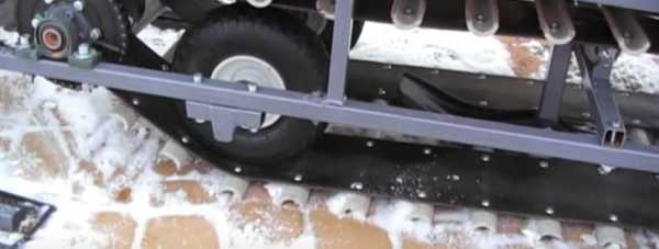 11. Гусеницы для снегохода можно сделать дома своими руками. В качестве материала подойдет конвейерная лента с прикрепленными на болтовых соединениях брусками или кусками труб для увеличения сцепления с дорогой.