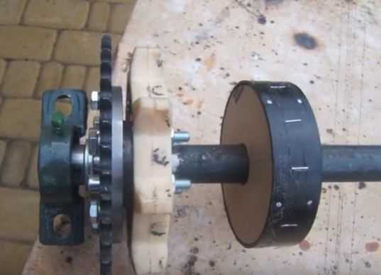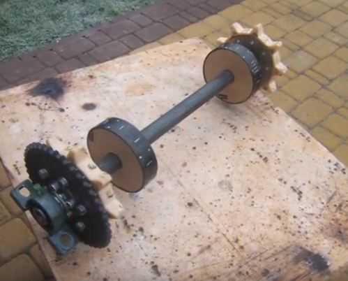 Ведущий вал состоит из звезда от мотоцикла «Минск», две звездочки от снегохода «Буран», натяжные барабаны.