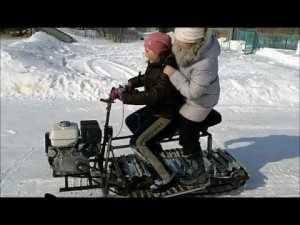Самодельный гусеничный снегоход отличается большей проходимостью, легко преодолевает большие снежные заносы и даже болотистые территории. Такой агрегат достаточно тяжёлый, что сказывается на его скорости и манёвренности. На снегоход можно установить мотор мотоблока мощностью от 9 л. с.