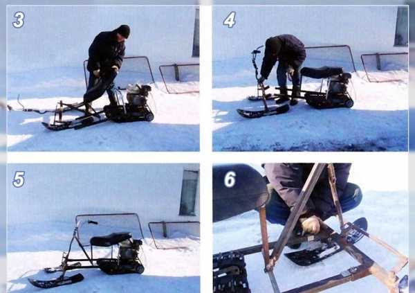 Сборку снегохода на базе мотоблока следует делать поэтапно: