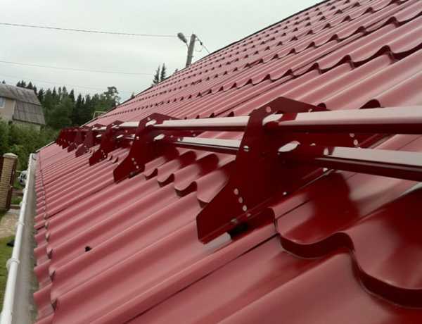 Крепление снегозадержателей к кровле с покрытием из металлочерепицы и металлопрофиля