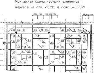 - Монтажная схема несущих элементов каркаса на отм. +10.743