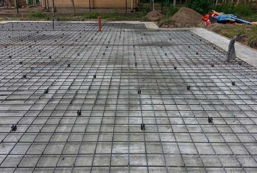 Что касается арматуры, то лучше всего связывать ее между собой проволокой. Как мы и говорили раньше, даже в полностью застывшем бетоне, связанная арматура может немного «играть», что делает ее подвижной. Это сохранит общую структуру основания, и не позволит появиться трещинам. Не экономьте на материале, особенно на бетоне и на количестве арматуры. Помните, что снижая диаметр арматуры на 1 порядок, вы теряете до 5-8% несущей способности основания.