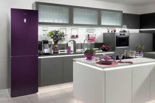 Современная идея: установите в шкафчиках скрытую подсветку, а гарнитур выберите с полупрозрачными дверцами. Таким образом вы получите загадочное мерцание. Отдайте предпочтение ярким, неоновым тонам, когда планируете кухню в стиле хай-тек.