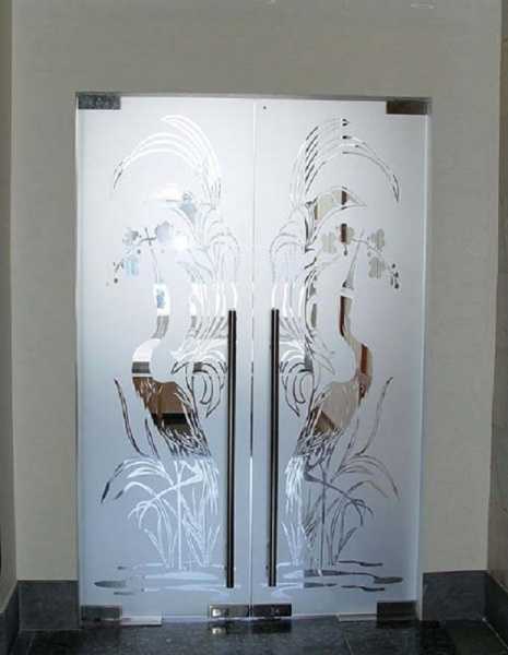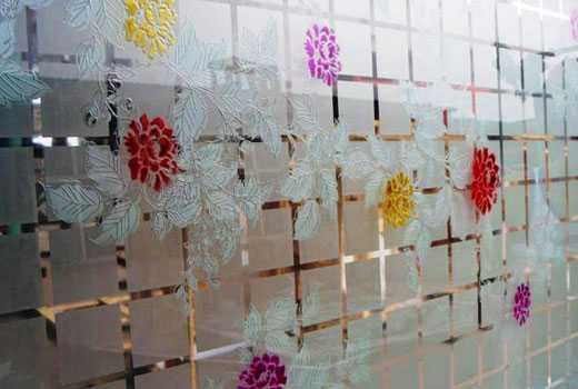 Любой узор на стекле дверей может быть сделан с помощью напыления