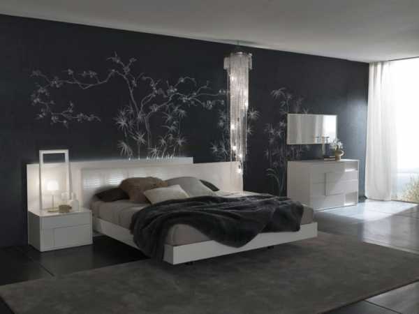 Наиболее удачное место для черных обоев — в супружеских спальнях. Здесь черный, как цвет тайны, магии и страсти, абсолютно гармоничен.