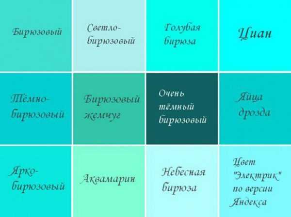 Оттенки бирюзового цвета