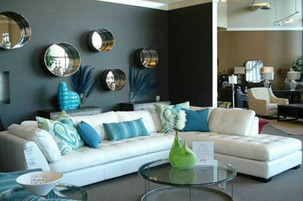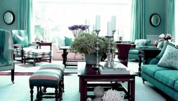 Бирюзовые цвета в интерьере гостиной