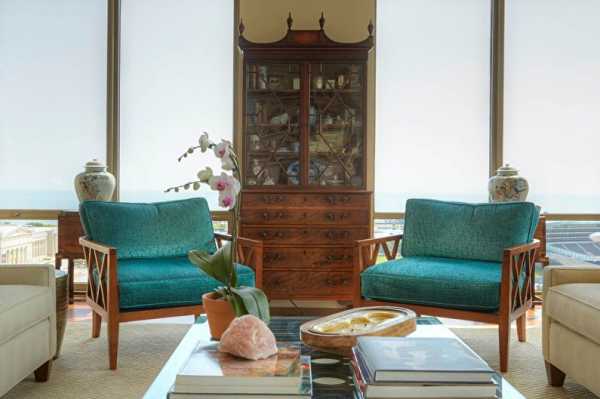 Элегантная гостиная в цветах морской волны