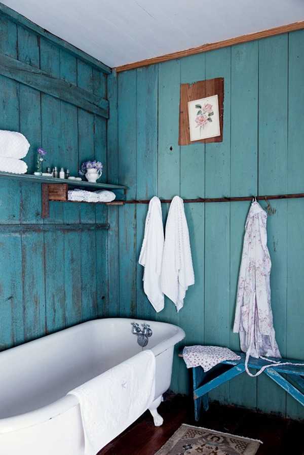 В деревенской стилистике цвет морской волны может иметь акцентное значение. Обычно пол, потолок, стены оформляют в нейтральной гамме, а шторы, ковры, картины, мебель можно сделать бирюзовыми.