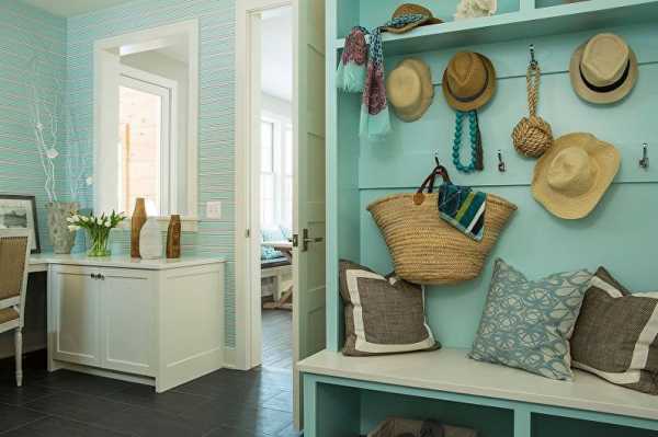 Это помещение создает первое впечатление о доме, квартире, поэтому его оформлению нужно уделить больше внимания. Прекрасным решением для коридора станет применение жизнерадостной бирюзы. Если размер прихожей небольшой, используют светлые оттенки морской волны в комбинации с белыми или бежевыми деталями.