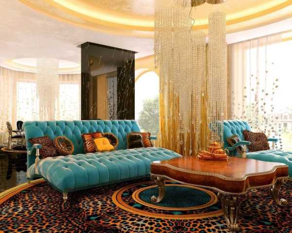 Если комната соответствует классическому дизайну и содержит бирюзовые элементы отделки, она станет напоминать зал старинного дворца.