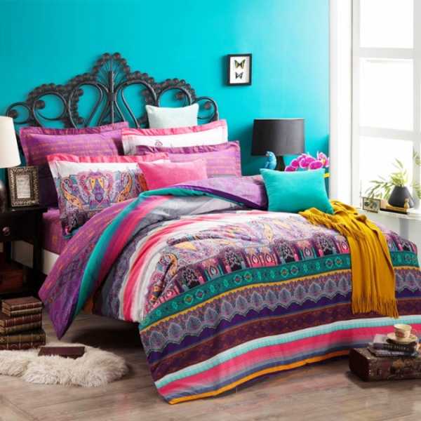 Популярными в стиле этно являются отделка мягкой мебели, навешивание балдахинов и светильников, раскладывание декоративных подушек бирюзового цвета. Этот оттенок может быть преобладающим в текстильных изделиях спальни, гостиной, особенно, в китайском стиле. Удачным сочетанием цветов также станет бирюзовый с желто-зеленым.